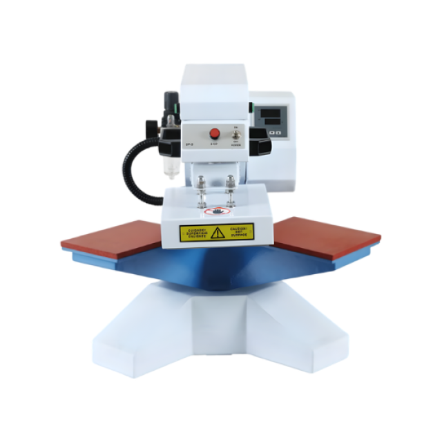 Thiết bị phù hợp nhất với công đoạn ép nhãn, decal và logo nhiệt tại xưởng may, xưởng in thêu và cơ sở in ấn quần áo số lượng lớn. Cơ chế 2 mâm và điều khiển khí nén tự động giúp duy trì năng suất cao liên tục mà không cần nhiều công nhân vận hành.